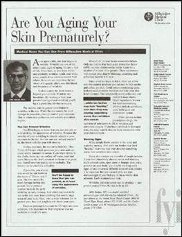 I have extensive experience writing various types of feature stories and case histories. The sample at right is an article that I ghostwrote on behalf of a dermatologist from the Milwaukee Medical Clinic explaining how the sun can prematurely age a person’s skin and the preventative methods that he recommends to avoid this problem. It was one of a series of various health articles that I wrote for several different specialists at the clinic. All articles were published in various Milwaukee-area newspapers and then reprinted as standalone handouts for distribution at the clinic and at presentations given by the doctors. To read the full story, click the PDF icon below. |
